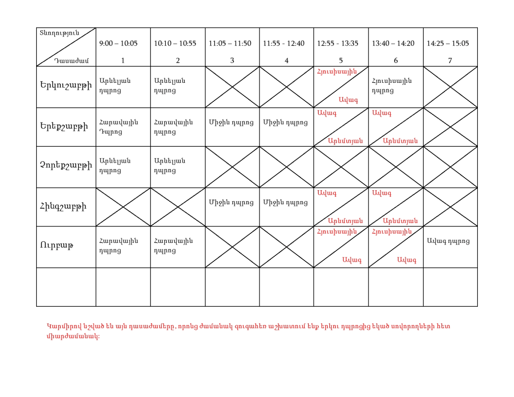 Սովորողները հաճախելու են ըստ ջոկատային ժամատախտակի.