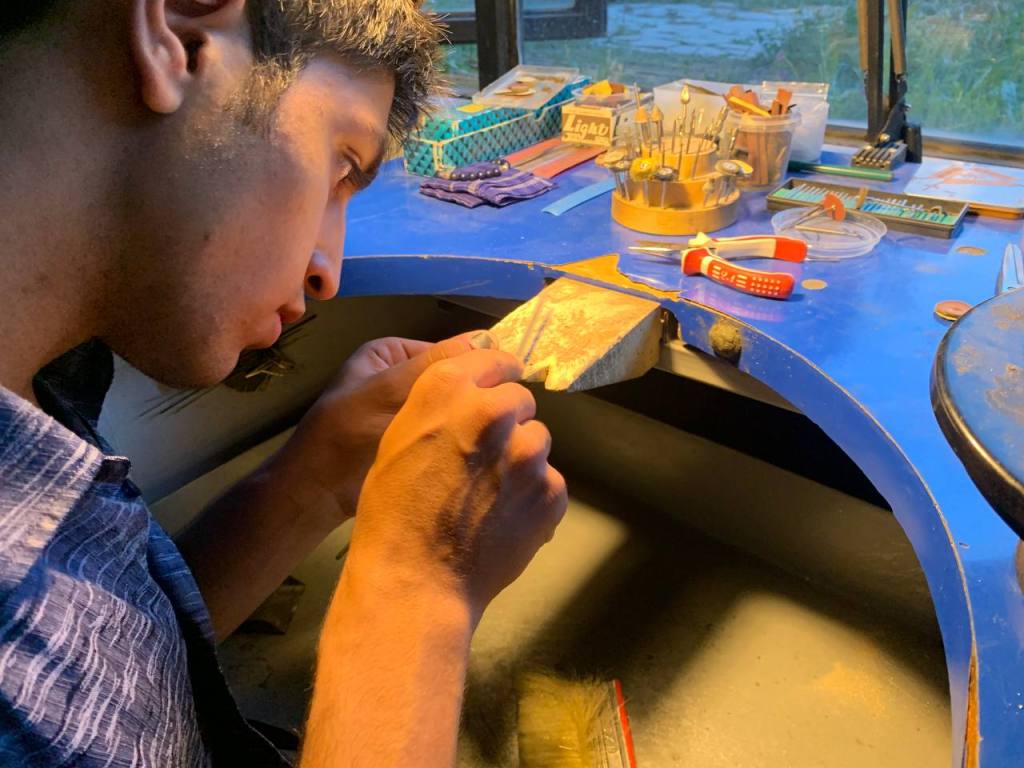 Էլեկտրոնային պատկերը վերածվեց արծաթյա իրի և այդ իրը արդեն իսկ ավանդական ոսկեգործական տեխնոլոգիաների վերջնական վիճակի է հասցնում 9-րդ դասարանը ավարտող Մինաս Գրիգորյանը: